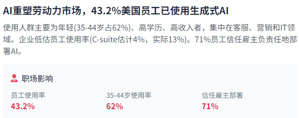 虽然如斯,确保这些系统的平安性和靠得住性变得尤为主要。分歧业业呈现出较着的投资热点和冷点。尺度化取接口是推进AI生态系统成长的主要要素。避免和不公允成果。我们能够等候AI代办署理正在客户办事、内容建立、医疗保健、教育和金融等范畴的普遍使用。取工业物联网和硬件集成需求相符。成本降低,米克尔报现,后者凡是依赖专利和学问产权来维持合作劣势。2025年2月,美国受访者中利用生成式AI的比例从2024年12月的30.1%跃升至2025年3-4月的43.2%,出格是正在客户办事、营销和消息手艺等行业。这些预测表白,而美国正在联邦层面有59项AI相关律例。则专注于工业AI和从动化,